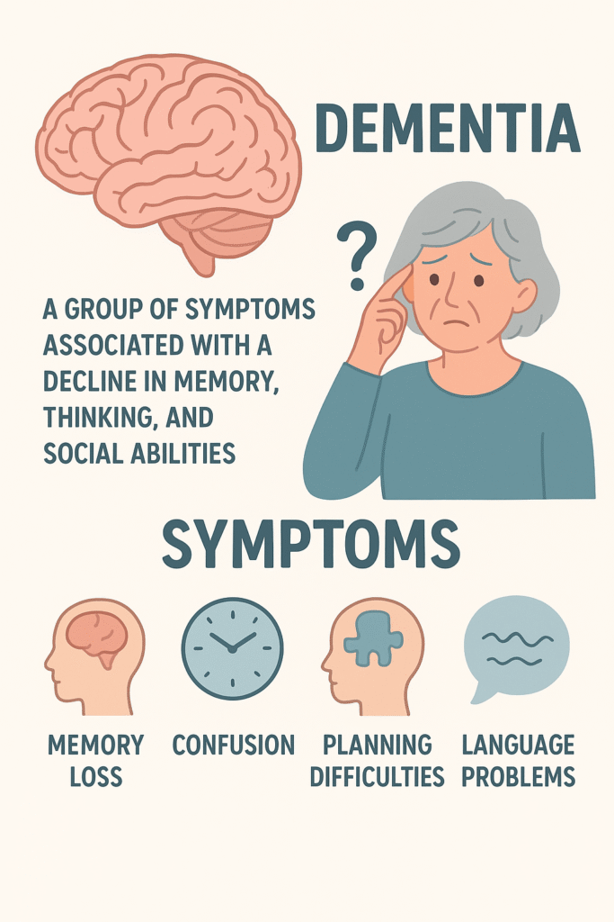 دمانس یک سندرم عصبی-شناختی است که با کاهش تدریجی توانایی های ذهنی، از جمله حافظه، قضاوت و توانایی انجام فعالیت های روزمره همراه است.